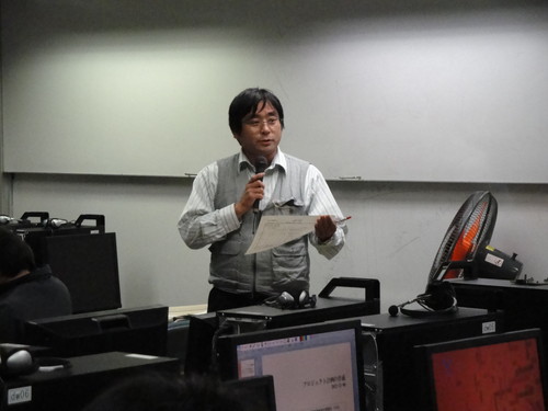 今回は、(株)YSKe-comから、廣瀬常務と沼部長を迎え「プロジェクト計画書」の作成で、前半は作成についての講義、後半は各グループの計画書作成の実習を行いました。