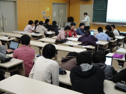 まず、前半は「プロジェクト計画書」の作成の講義を受け、後半は6つの班に分かれて、各班で作成するシステムについての「プロジェクト計画書」のうち、スケジュールとプロジェクト体制図の作成を行いました。