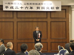 会員、来賓合わせ51名が出席し、飯室会長から新春の挨拶があり、続いて、ご来賓の県企画県民部 岩波部長の挨拶の後、賀詞交歓に入り、互いに情報交換を行いました。