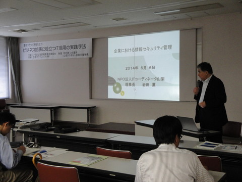 続いて、LOCAL STANDARD社の大木社長より活用事例、ITコーディネータ山梨の岩田理事長の講演があり、ITを活用した事例に興味をもって聞き入っていました。
